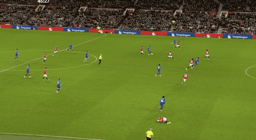 上半场补时阶段,曼联获得角球,B费将球开出,约罗做了一个完美的挡拆,卡塞米罗后点头球破门。