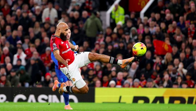 伯恩茅斯的防守,在曼联的高效进攻下,四处漏风,第34分钟,阿玛德·迪亚洛一路带球狂奔,以一敌三,可惜最后的射门被后卫拦截。
